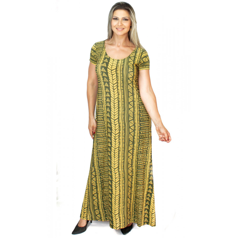 VESTIDO EVASE LONGO C/ MANGA